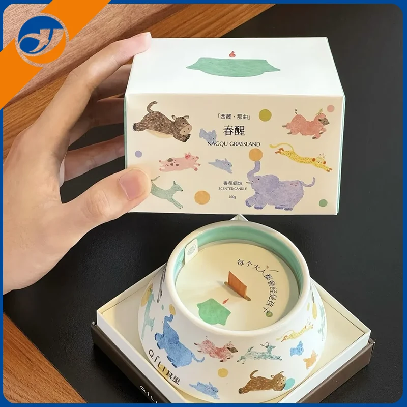 aromatherapy ဖယောင်းတိုင်လက်ဆောင်သေတ္တာသည် ze Meijia မှဒီဇိုင်းဆွဲထားသည့်အဆင့်မြင့်လက်ဆောင်သေတ္တာထုပ်ပိုးခြင်းဖြစ်သည်။ ရနံ့အက်ကုထုံးဖယောင်းတိုင်လက်ဆောင်သေတ္တာကိုရွှေတံဆိပ်ဖြင့်တံဆိပ်ခတ်ထားသောတံဆိပ်, ဖဲကြိုး,