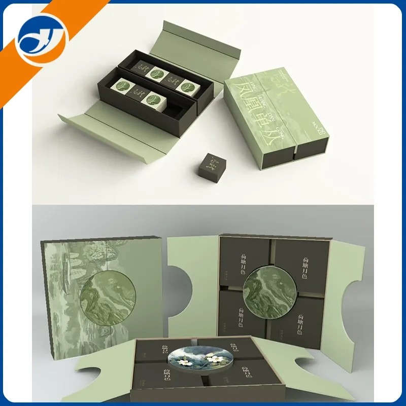 Lining နှင့် Inner Support - 1500g ကတ်ထူပြားအတွင်းပိုင်းအကောင်အထည်ဖော်မှုသည်လက်ဆောင်များကိုကာကွယ်ရန်အတွက်သယ်ယူပို့ဆောင်ရေးလုံခြုံမှုကိုသေချာစေရန် EVA / Sponge Inner Support (Moon Cakes, လက်ဖက်ရည်စသည့်) သည်မပျက်စီးလွယ်သောပစ္စည်းများကိုပြုပြင်သည်။